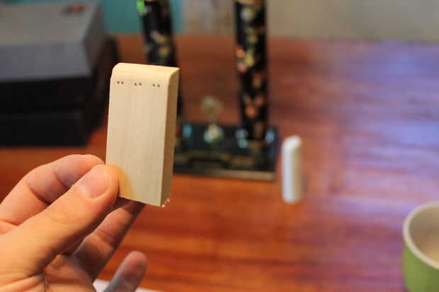 6. por último, cortar la madera a lo largo de la línea de 2 1/2". Puede utilizar una caja de ingletes, si está disponible y añadir un elegante ángulo y redondo hacia fuera con un archivo como lo hice en la parte superior e inferior, pero esto es completamente opcional. (imagen 1)