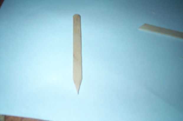 Tomar un palo popsickle y cortarlo con un punto, se trata del mango.