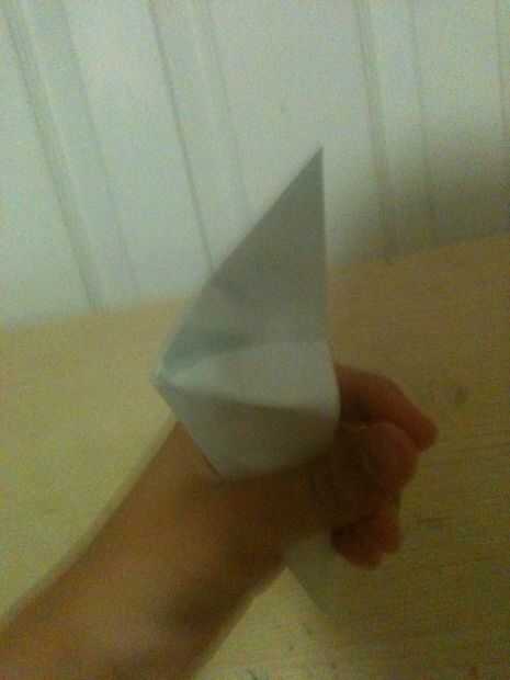 5. utilizando la parte gruesa ponga el triángulo boca abajo y repita el doblez sobre x 2