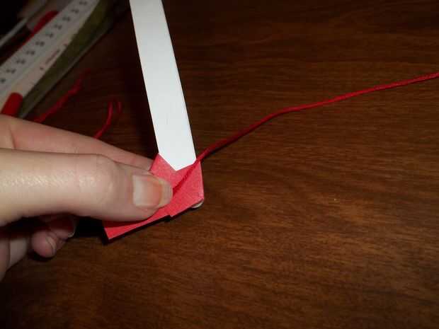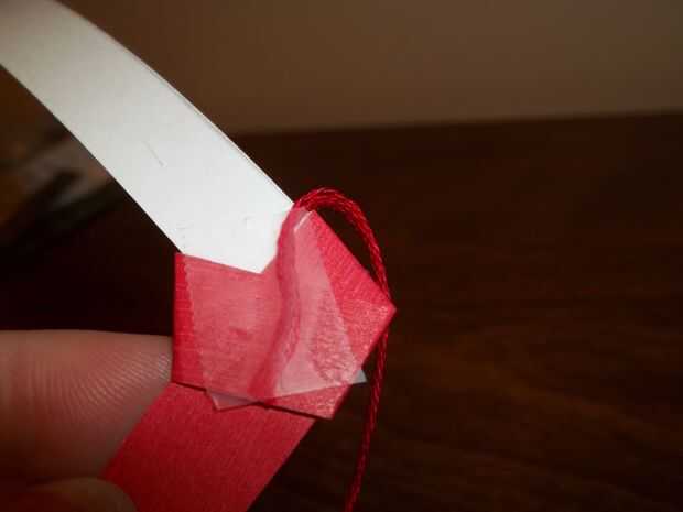 En la parte 'posterior' (con la parte blanca del papel hacia arriba) vas a colocar un poco de cuerda.