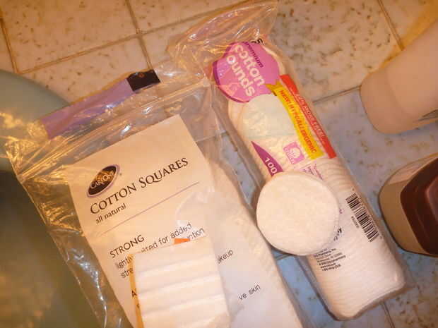-Una especie de algodón : que incluye bolas de algodón, algodón cuadrados y redondos de algodón. Usted puede comprar en una farmacia, o probablemente cualquier lugar que venden esmalte de uñas, porque eso es lo que bolas de algodón se utilizan principalmente para. ¿(Creo que)?