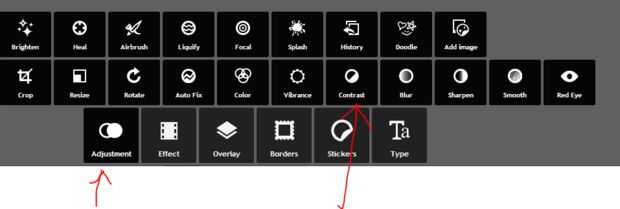 Abra el pic. con pixlr express. inmediato utilizando la opción de ajuste elegir contraste violín con él hasta que tus ojos sienten relajados no brillante no oscuro