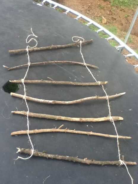 usando la guita los pedazos juntos en la misma distancia y dejan aproximadamente 10 pulgadas a la izquierda en ambos lados