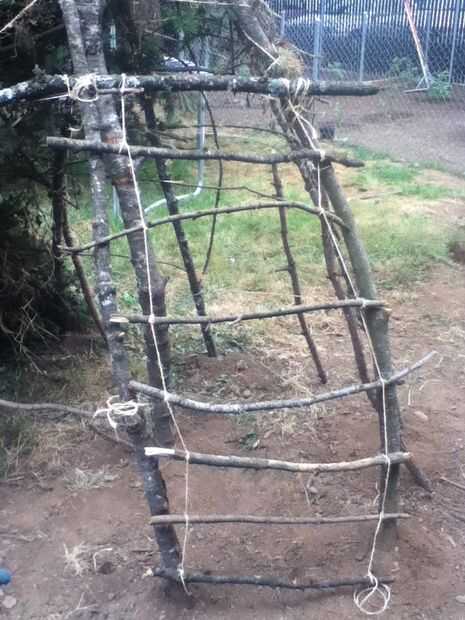 tie un palo corto a dos palos verticales largo unido a la caída superior allí su puerta casi listo