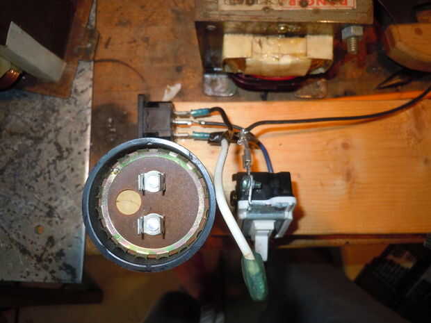 encontrar un buen lugar para entrada de alimentación, interruptor y condensador y pone hacia fuera en el extremo izquierdo del tablero. A continuación fije todo, que utilicé epoxi para asegurar el condensador y la entrada de energía ya que se puede atornillar en. Conecte el terminal en la entrada a la zapata de la parte inferior del interruptor y conecte el terminal superior del interruptor a un lado de las terminales del capacitor. debe conectarse el terminal neutro en la entrada de la terminal adyacente. Último conectar la tierra al tornillo de tierra en el interruptor.