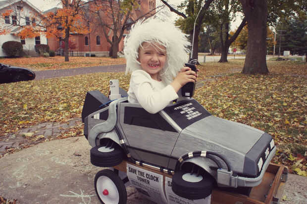 películas. Nuestra hija de 6 años le encanta la mayoría de ellos también. Su personaje favorito en la parte trasera para las películas del futuro es Doc Brown. Decidimos que este sería el año para rendir homenaje a la parte trasera para las películas del futuro y que pretende ser Doc para un día.