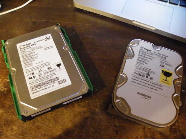7 discos duros de varios tamaños, de 80 gigas a 20 conciertos