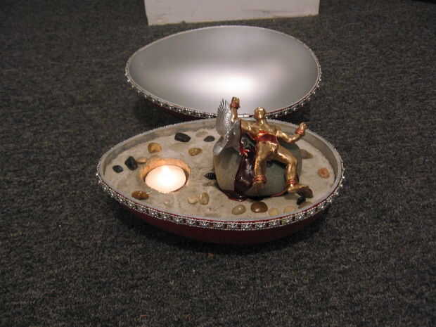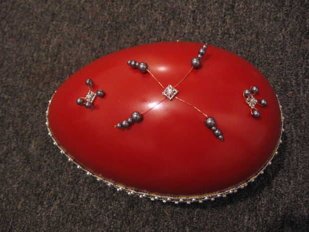 This is my egg. Fue inspirado parcialmente por el huevo de la coronación y el huevo de la pezuña. Vi el huevo de la coronación como parte de un Fabergé muestran que mi madre me arrastró hasta hace años. Fui a lo largo para ser un buen hijo no pensand