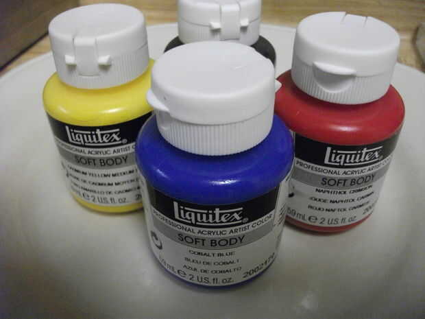 Salir de sus pinturas de acrílico de color y cepillitos. Azul, rojo y amarillo hará marrón. Estoy deseando intentar un color hueso para el tubo siguiente. De todos modos, mezclar el tono deseado de brown si ese es el color que elija utilizando los tres colores primarios. Seguir adelante y pintar su varita. Haz todas las poco pote marcas, grietas y tal.