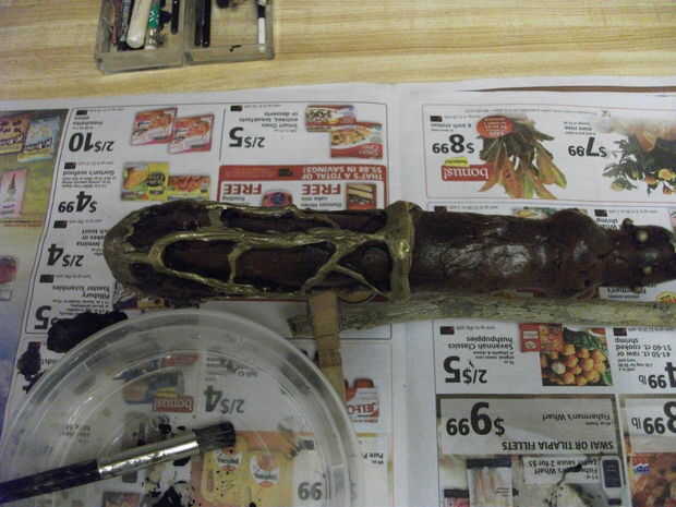 Para esto utilicé un marcador pintura oro que trabajó excelllent. Una vez seca la pintura oro hice un lavado de negro más para mayor profundidad y deja que se seque.