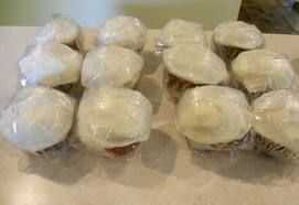 estos son unos cupcakes me y mi amigo hizo en una fiesta de pijamas. Cocinan algunos cupcakes chocolate de una mezcla de paquetes. Cuando estaban fríos cortamos un círculo pequeño de la torta de la parte superior. Luego se utilizó helar en una lata y