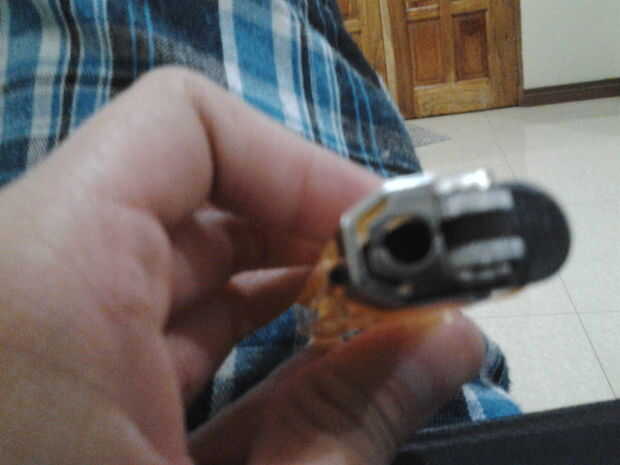 si usted mirar el agujero se puede ver el pequeño círculo que el fuego viene a través del orificio