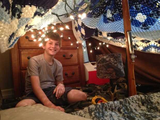 Primero poner una lámpara en el centro para iluminar la fortaleza entera. Luego poner las luces de Navidad en las esquinas. Entonces listo!