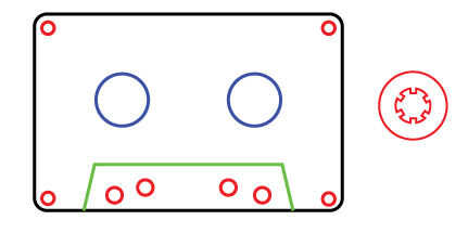 Corte: Luego con el cuchillo y la almohadilla de corte con cuidado corta los círculos pequeños (rojo) y los círculos mediados grandes 2 (azul) para ambas piezas de cartón. Mantenga el corte del círculo grande 2 salidas para más adelante. Lo mismo para las ruedas dentadas.