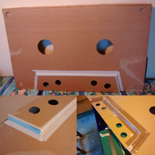 Coloque las tiras en el trapezoide asegurándose de usar cinta adhesiva en el exterior. En mi traje levantó el trapezoide de 20mm había doblado el exceso empotrado en el interior del cuerpo principal y había asegurado con cinta de embalaje.