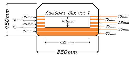 La etiqueta es bastante recta hacia adelante. Primero se corta el papel para el tamaño y luego marcar a lápiz la línea espaciamiento, el medio corte y el texto. Las dimensiones están en el plan anterior.
