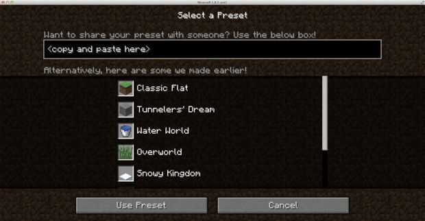 Entonces el tipo de mundo en superflat y luego haga clic en preestablecidos