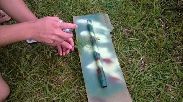 Rifle que hice cuando estaba aburrido con cosas encontradas en mi apartamento. Usé cartulina para casi todo. Stock, butt, receptor, antebrazo, revista y empuñadura de pistola se hacen de cartón. Endereza perchas de alambre y conducto los grabados ent