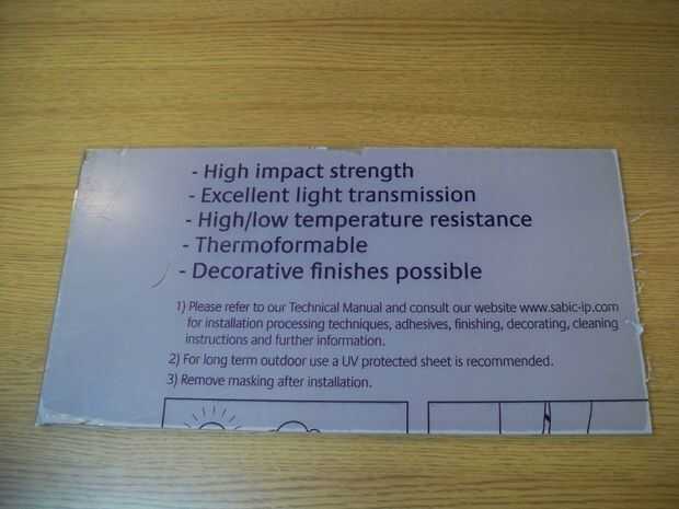 1 - hoja policarbonato - 10,75 x 2 en x 0.25 en -proveedor de plásticos local, $3