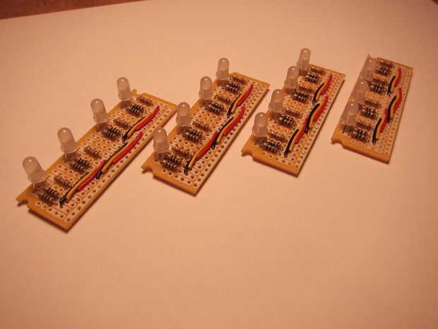 2) recortar partes del tablero de. Con el fin de mantener una distancia uniforme entre el LED los lados cortos del tablero que se deban recortar. Con un cuchillo, marcar ambos lados de la Junta a lo largo de una línea paralela al borde que cruza el centro del agujero de montaje. Utilice dos pinzas para romper el borde no deseado.