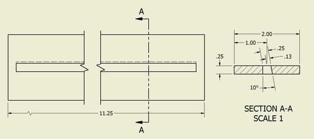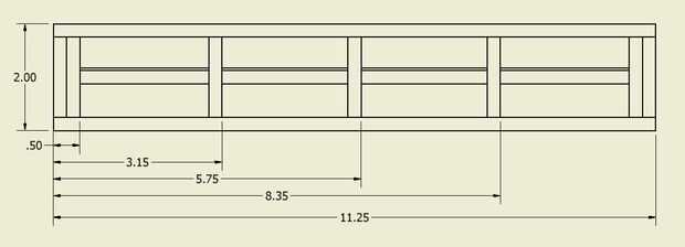 El cuadro de base se construye de una serie de 1/4 en paneles de roble maciza. El patrón para los paneles de la foto a continuación. Sólo la longitud y el espacio entre las costillas se deben modificarse si utiliza texto diferente.