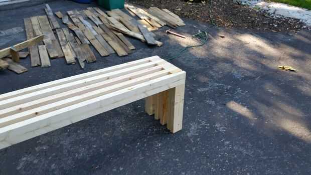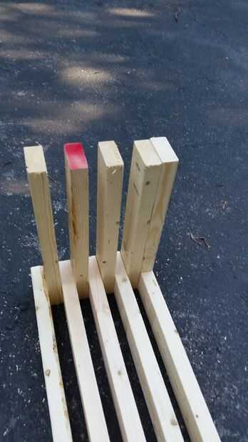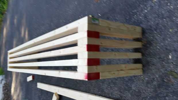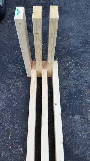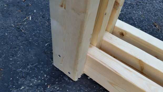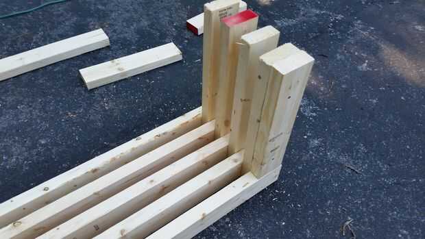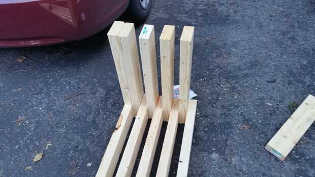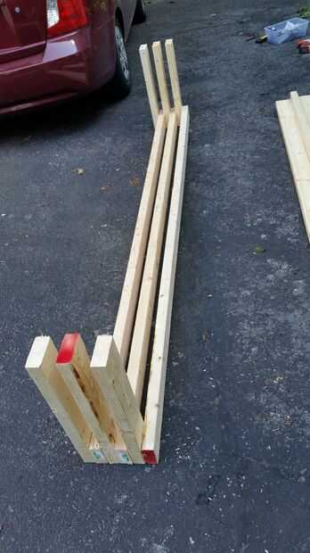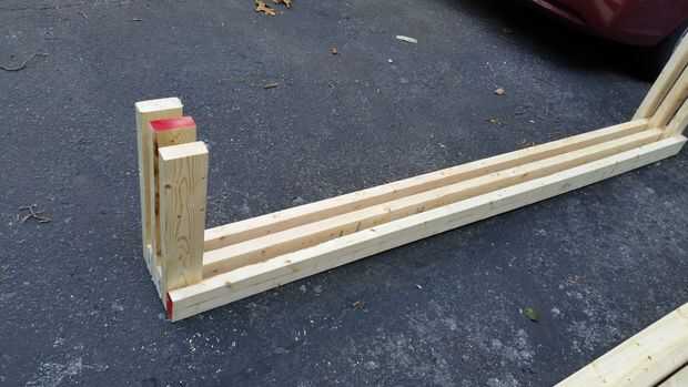 Quería mantener el televisor de la consola mucho tiempo y baja (para jugar el perfil moderno y así pude poner una tv en la parte superior que me dejará rompió haciendo sonar), usé toda la longitud de los postes de madera como la longitud y corte 3 otras vigas en 20 pulgadas piezas para las piernas. Yo elegí estratégicamente esta altura para ocultar los enchufes en la pared. Entonces simplemente capa y atorníllelos, añadir otra capa, tornillo juntos, y así sucesivamente hasta obtener el ancho que desee. Mi estructura final tenía 9 capas todos juntos. Probablemente me llevó 20 minutos para construirlo, que no es demasiado malo. Naturalmente me quité el resto del día y comenzó la fase 2 en el día siguiente (porque soy todavía perezoso y todo).