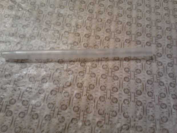 conseguir una pluma BIC y saque la cámara de tinta con pinzas o sus dientes, manos. Hacer un agujero en el centro de la pluma con un cuchillo. Entonces una goma y poner en el lápiz como se muestra en la imagen. Entonces la cámara de tinta a través de