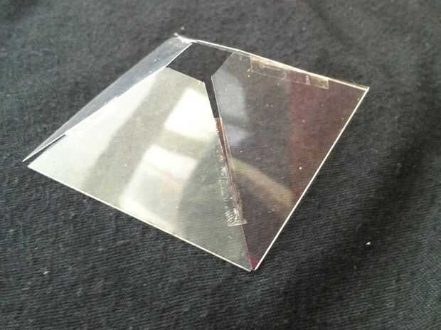 Cortar las 4 paredes y usando pequeños trozos de cinta adhesiva transparente palo los 4 muros para dar una forma de pirámide