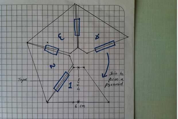 los 4 lados, doblan para formar la pirámide y pegar con la cinta transparente.