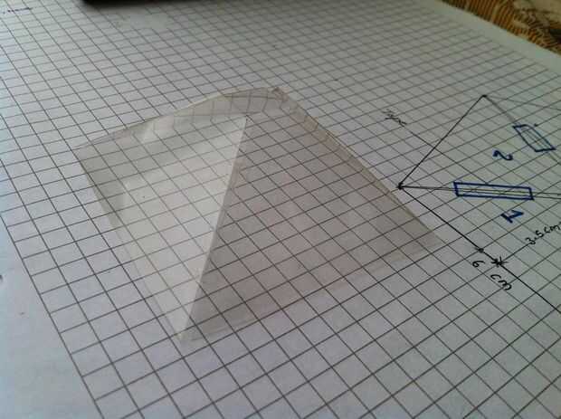 Utilizando la plantilla arriba, trazar en las paredes de la hoja 4 de la pirámide
