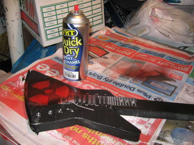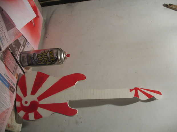 Primer rastro alrededor de un pedazo de papel y dibujar en la forma de la guitarra se remonta lo que quieres ser en la guitarra, cortan tout todas las cosas del mismo color, si tienes más de uno repetición el proceso.