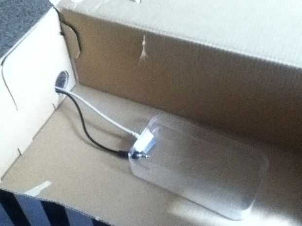 Ahora Pon tu iPod en la caja de plástico y de carga, mientras que tu viendo un video y poner los altavoces en el (los cordones van en la parte posterior de la caja) pero asegúrese de que el iPod esté boca abajo mientras tu viendo un video, sólo doble toque en el golpe de botón home a la izquierda y bloquearlo!