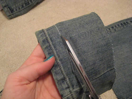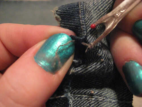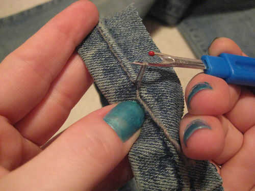 Primera manera - escoge los puntos de la parte superior. Utilice la punta del destripador de la costura para ir debajo de cada una de las puntadas para tirar hacia fuera.