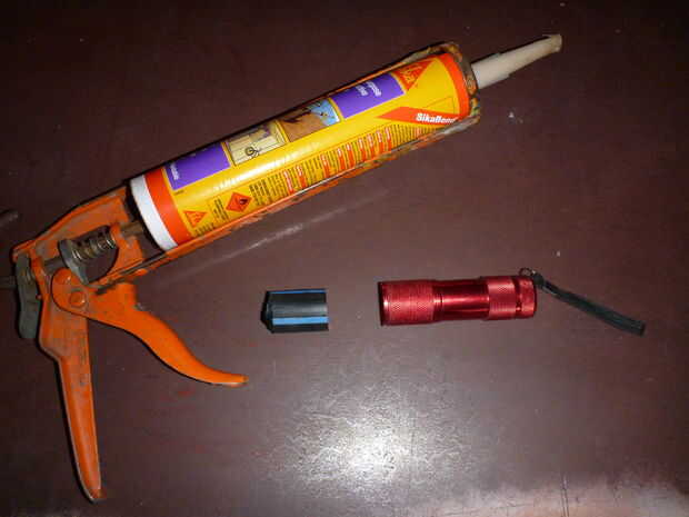 - Haz una pequeña linterna vieja sikaflex (pegamento industrial) y un poco de congute o tubería de plástico de 3/4 de pulgada de diámetro y 1 pulgada de largo.