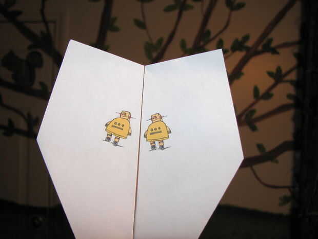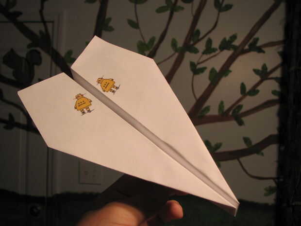 2) si el avión siempre parece estar dirigido hacia el suelo, doblar la parte trasera de las alas un poco. Tenga cuidado de no doblar las alas demasiado o tendrás que volver a problema 1.