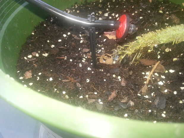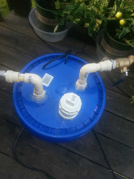Una vez que el cubo todo montado y poner donde tienes tus plantas, es tiempo funcionando. Primero conectar la manguera de agua y y el cubo de llenar. Una vez que esté completo puede enchufe la bomba y dejó comenzar a ciclar el agua a través de la tubería de goteo. Usé los picos poco que viene con el embalaje para ayudar a mantener las boquillas de goteo en los cubos. A medida que el sistema llena verás algunos que no se gotee, o se gotea lentamente. Uso la misma recta del perno de antes de añadir agujeros adicionales gracias a la cola en las boquillas.