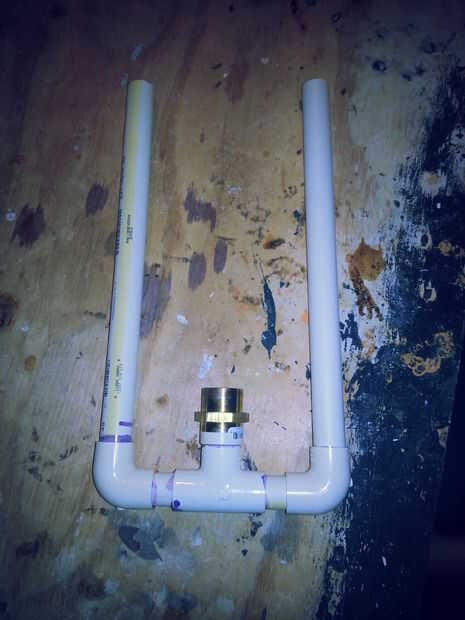 Cada uno de los dos 12" CPVC pedazos en los orificios restantes en los codos.