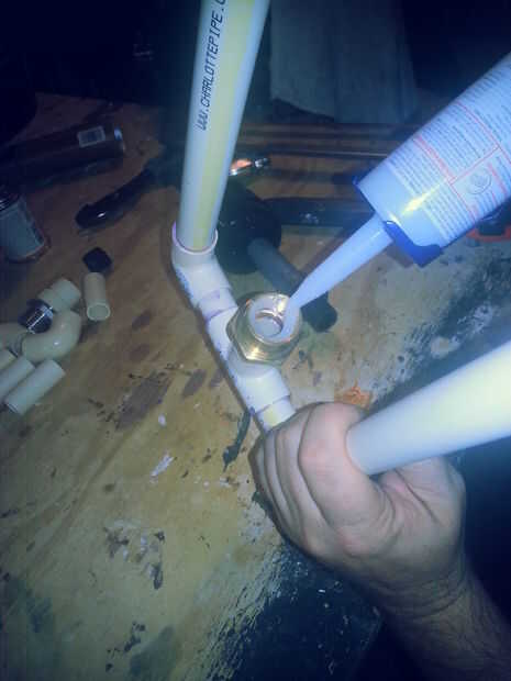 Medir hacia abajo una pulgada del reborde y corte el exceso con una segueta. Calafatee alrededor de la parte roscada de bajo perfil, atornille el FlowMaster, puede intentar ir torcido, OK es un poco torcido, pero trate de no permitir que lean sobre manera. A continuación rellenamos la izquierda sobre boquete con más masilla. Esto tiene que ser herméticos al agua.