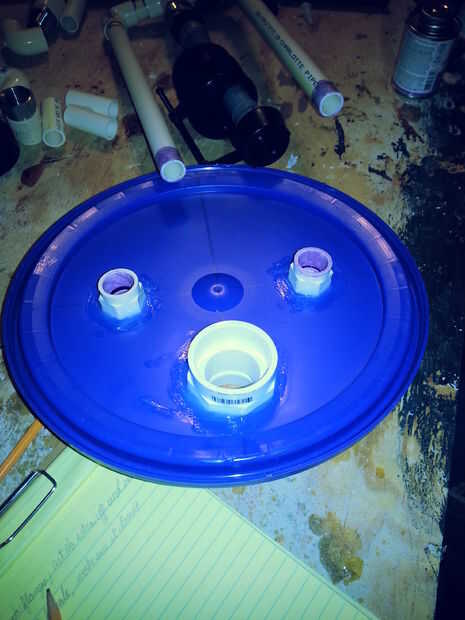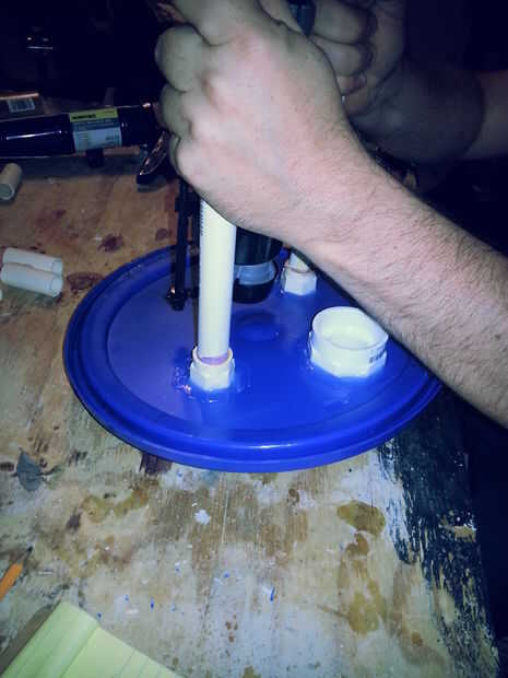 Preparar las tapas de los 2 dos 12" pedazos de CVPC y deslizar piezas que están dentro de la tapa del cubo. Unirlo todo.