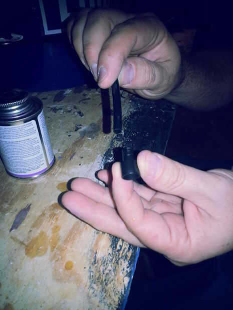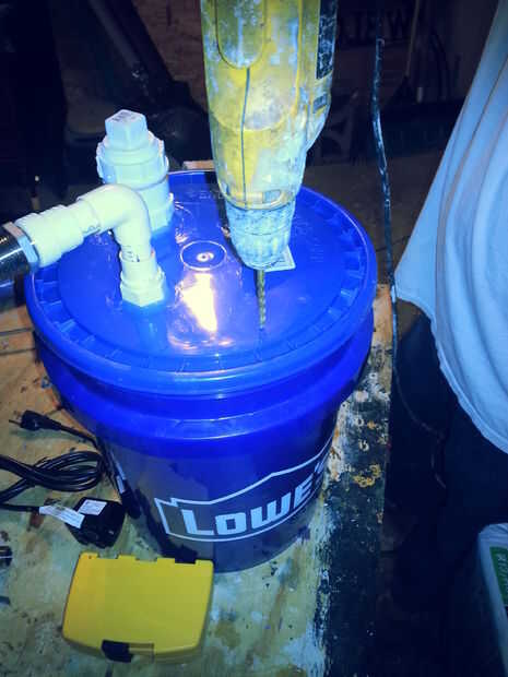 Luego pegar la clavija de la parte posterior de la bomba en el extremo de la tubería ahora se pegue por la parte inferior de la tapa del cubo. Yo apoyada en un par de pinzas para secar. Este es un buen paso para parar en y dejar que todo el conjunto de cola durante la noche tanto en el CPVC en el tubo de piezas. No es totalmente necesario, pero creo ayuda a evitar algunos problemas en el futuro hacia abajo de la línea de salida.