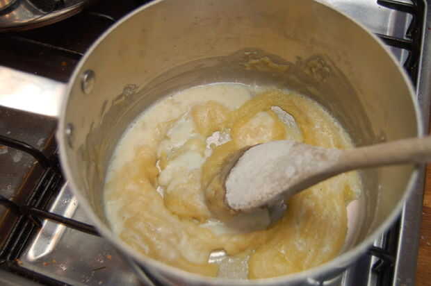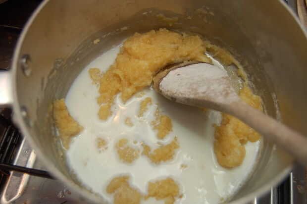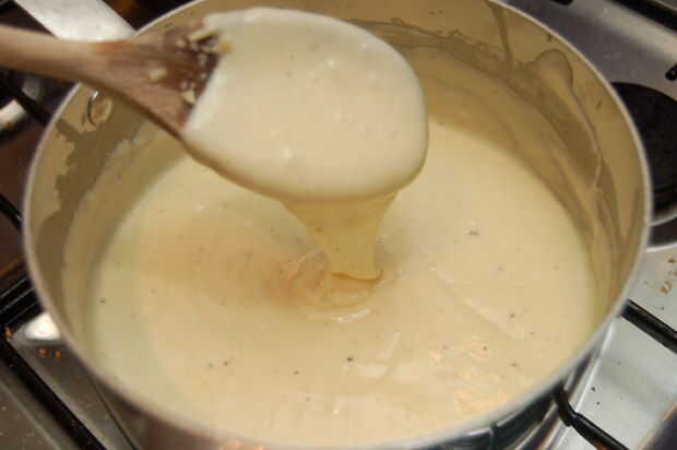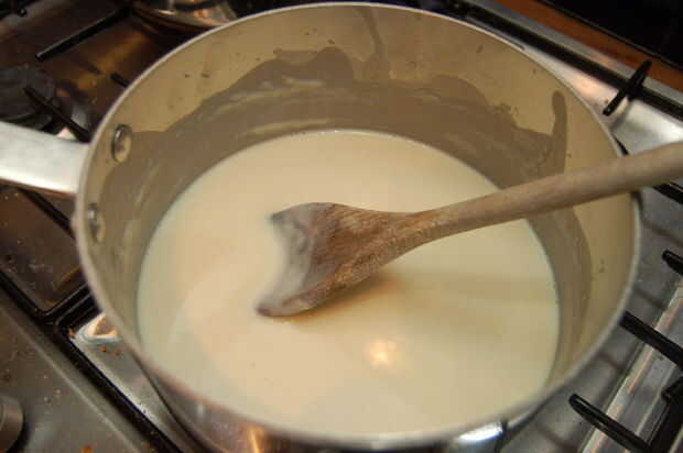 Ahora, poco a poco agregar la leche revolviendo bien después de cada adición para asegurar que se combina totalmente y grumos no se están formando. Se enteró de algunas personas que calentar la leche por separado, nunca me molesta porque lío sólo extra y mis salsas siempre es trabajar en bien de esta manera.