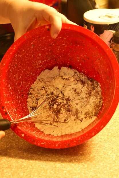 Precaliente su horno a 350°. En serio, esta receta es tan fácil si no que ahora seguramente tendrá que esperar a que el horno conseguir la temperatura después de preparar todos los ingredientes.Algunas personas no les gusta usar mezclas para hornear,