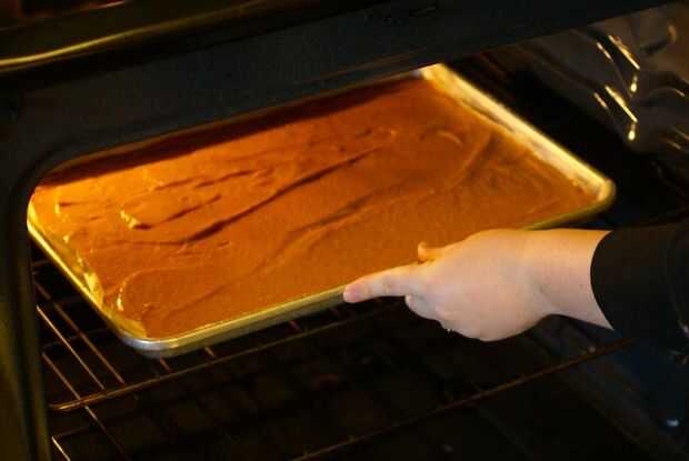 Coloque la bandeja en el horno precalentado y hornear durante 13-15 minutos o hasta que el pastel es elástico al tacto. No quiero en hornear el pastel. Se pega el papel y ser un desastre!