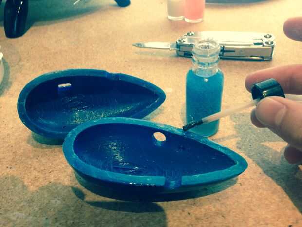 Ahora podemos usar nuestra mezcla acetona para combinar piezas, rellene los agujeros o ranuras y suavizar las zonas podría haber perdido el baño de vapor. Mezcla de acetona se hace simplemente dejando ABS disolver en algunos acetona. Sólo utilizar chatarra de impresiones fallidas y estructuras de apoyo. Debe procurar obtener agradables y gruesas, probablemente aproximadamente el 30% ABS desechos a acetona por volumen (aunque mucho depende de la calidad del filamento)