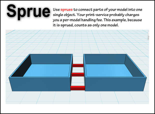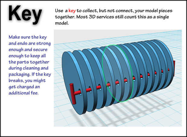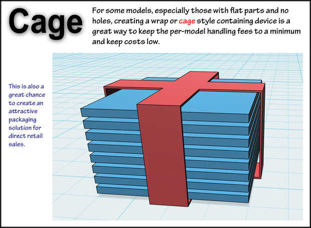 Cada parte independiente en su diseño tiene que ser limpiado a mano, identificados y coordinados con un orden, entonces los paquetes exteriores. Así que el servicio de impresión le cobra una pequeña cuota para cada modelo separado. Recuerde que estos útiles también tiene gente en el servicio de impresión de cientos, quizás miles de objetos en cada tirada - su diseño es sólo uno de ellos. Ayudar a sus socios y mantener sus propios costos de baja por la recogida de las piezas de tu modelo en un paquete fácil de manejar...