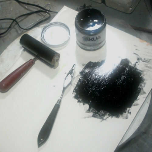 Esto es similar a la impresión de bloque de linóleo, excepto que el diseño se talla hacia fuera con el calor en lugar de herramientas de corte. Utilicé un soldador pequeño 30 watt con un regulador de tensión separado para el ajuste preciso de la temperatura, así que hay mínimo quema del material. Dada la buena ventilación creo que es bastante seguro trabajar con. Yo iré detrás para experimentar más, eso es seguro. Hay probablemente más contaminación del aire de solo mirar a un automóvil que hay de jugar con esta técnica.