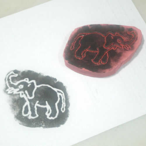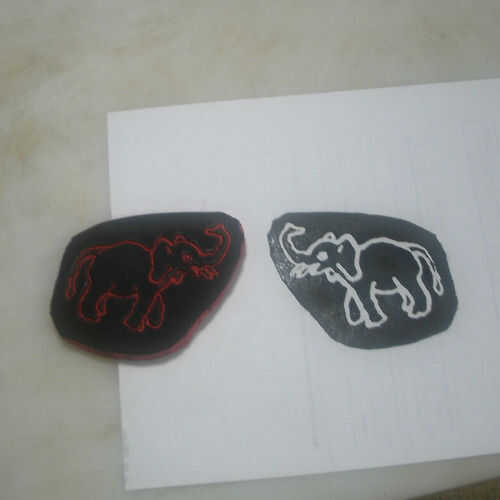 Una cosa buena acerca de estos clisés de goma es que no necesita una imprenta. Hice esta impresión acaba por poner la cara de bloque sobre el papel y empujando hacia abajo en el bloque con las manos mientras balanceo alrededor de a difundir la presión hacia fuera.