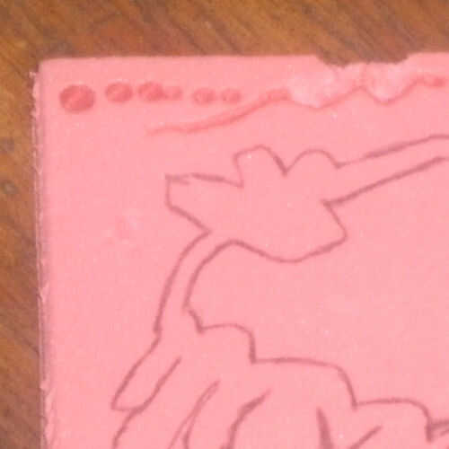A diferencia de linóleo cortado, los bordes de las líneas de fundido son ligeramente redondeados. Es mucho más fácil hacer líneas curvas con gracia con esta técnica que es con el corte del bloque de linóleo. También va mucho más rápido; en sobre velocidad de dibujo.