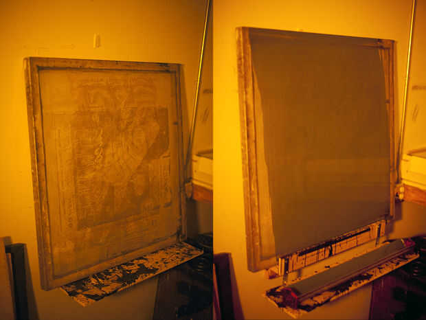 Cubrir la pantalla con la emulsión de la foto en un cuarto oscuro o lejos de la luz directa. Espere a que la emulsión se seque uniformemente.