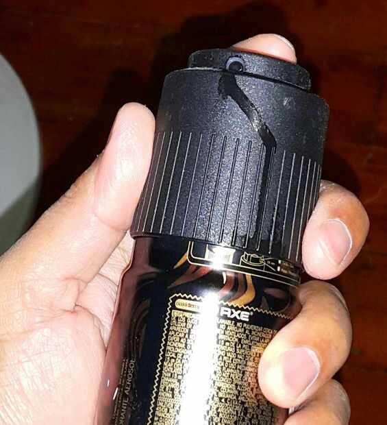 Usé una lata de desodorante spray para demostrar al principio. La corriente de gotitas líquidas de la boquilla es fácilmente visible. También el funcionamiento del desodorante líquido sobre la tapa se ve visualmente y térmicamente.